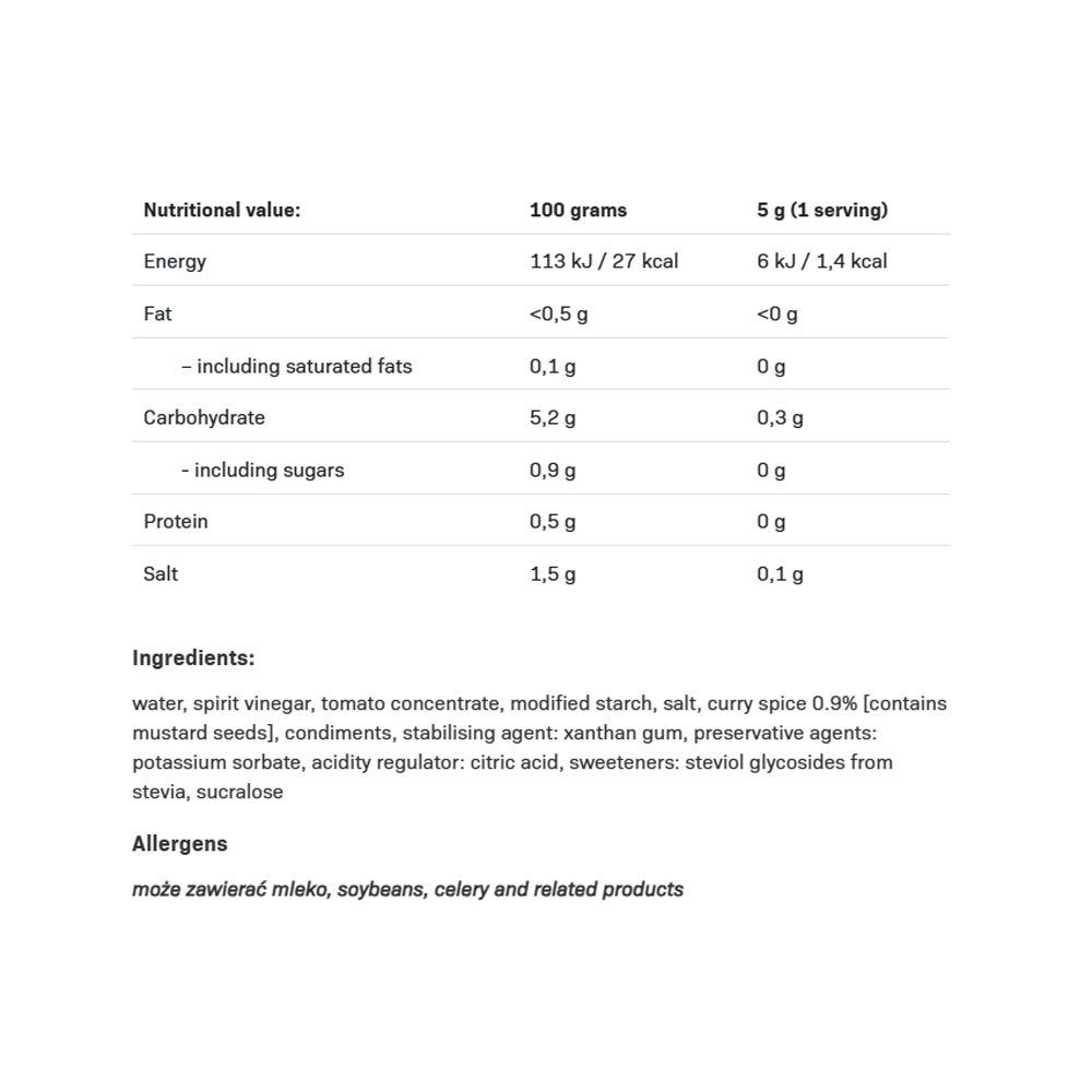 Unikalna formuła sosu zapewnia idealną konsystencję, która doskonale komponuje się z różnorodnymi potrawami. Czy to do marynowania, jako dip czy dodatek do gotowych dań, CURRY SAUCE zawsze spełni Twoje oczekiwania.