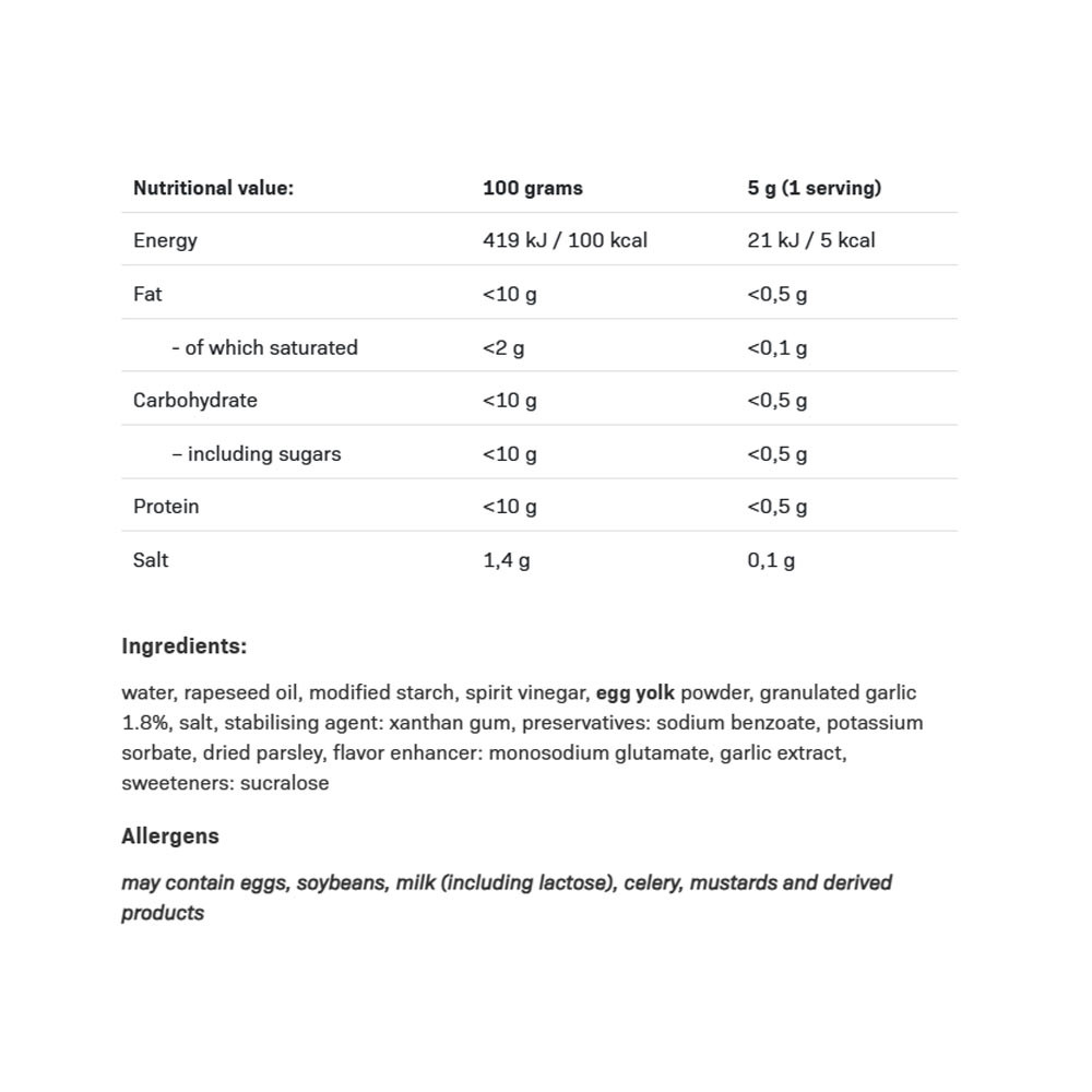 • Pyszny, niskokaloryczny sos o klasycznym czosnkowym smaku
