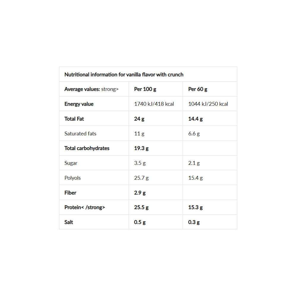 Wielowarstwowy baton proteinowy o niskiej zawartości węglowodanów i niskiej zawartości cukru.