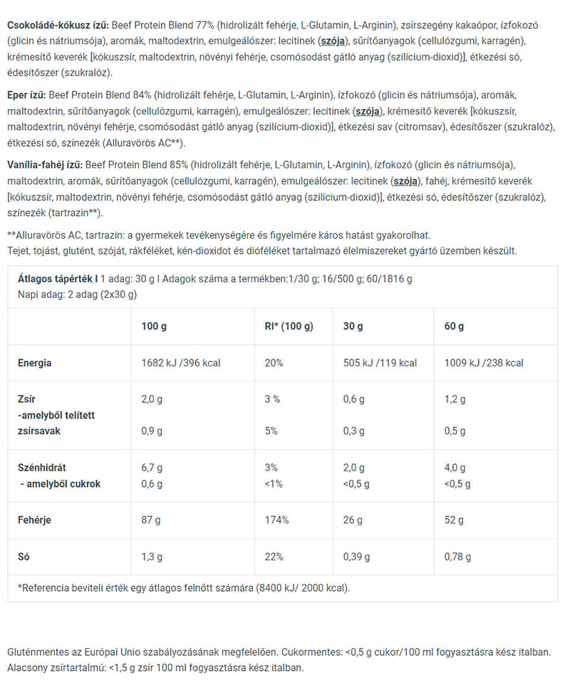 Białko wołowe jest łatwiej przyswajalnym źródłem białka niż niskotłuszczowa wołowina (np. steak), is readily absorbed and has high biological value as a protein of animal origin.