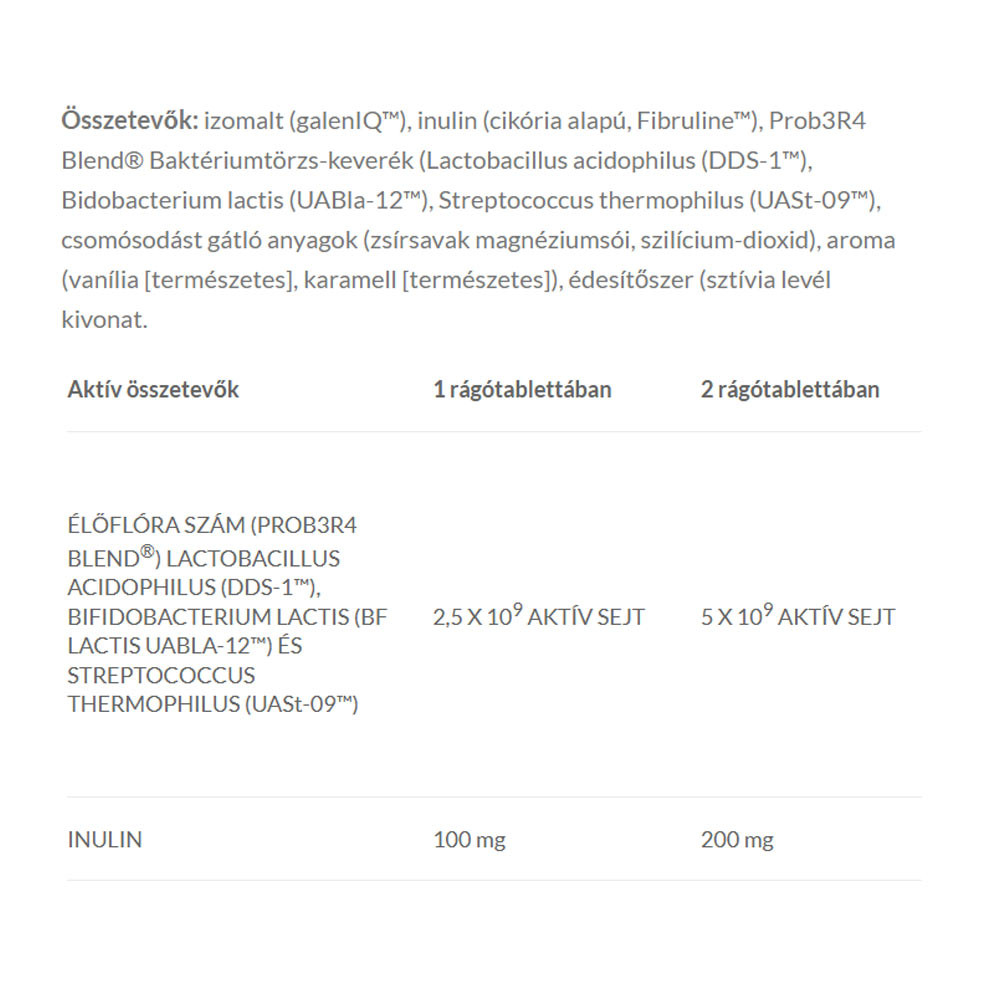 JutaVit Probium Kid dla dzieci + Inulina to suplement diety zawierający Lactobacillus acidophilus (DDS-1™), Bidobacterium lactis (Bf lactis UABla-12™), Streptococcus thermophilus (UASt-09™) oraz Inulinę o przyjemnym, naturalnym aromacie waniliowo-karmelowym i substancję słodzącą.