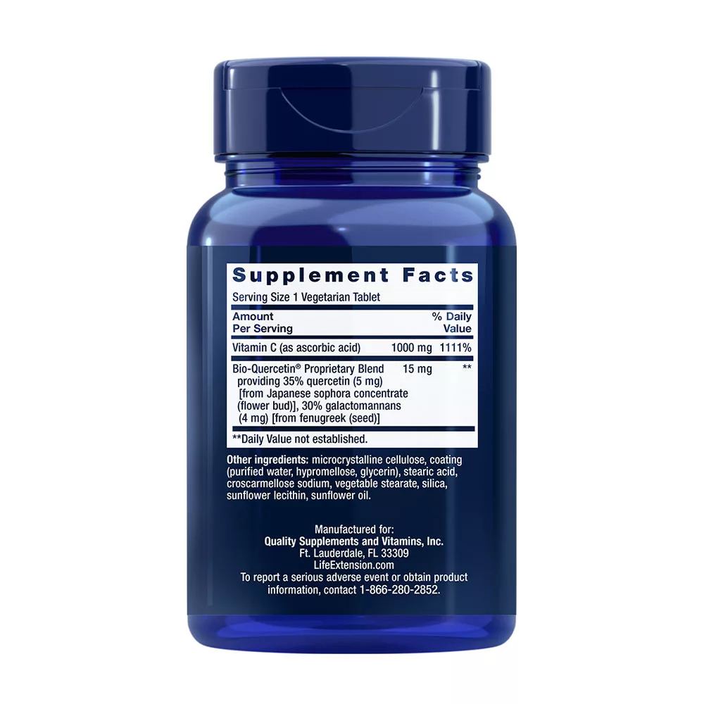 Plus, biologiczna aktywność witaminy C jest uzupełniona korzyściami zdrowotnymi flawonoidu kwercetyny. W rzeczywistości witamina C i bioflawonoidy są często obecne razem w zdrowej żywności, takiej jak owoce i warzywa, zwłaszcza owoce cytrusowe.