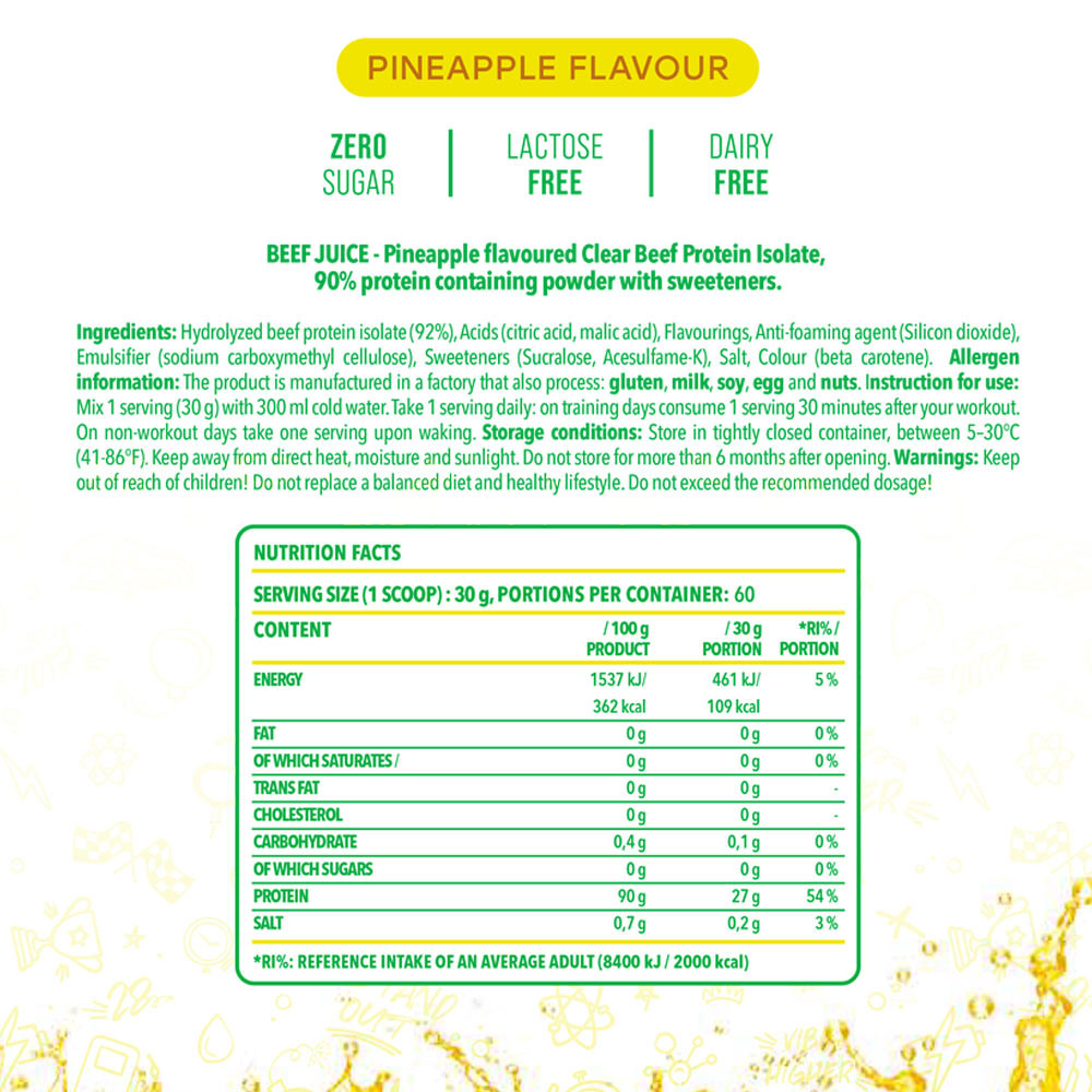 Nasz Clear Beef Protein Isolate Beef Juice wyróżnia się nie tylko dlatego, że zapewnia wysokiej jakości hydrolizowany izolat białka wołowego o imponującej