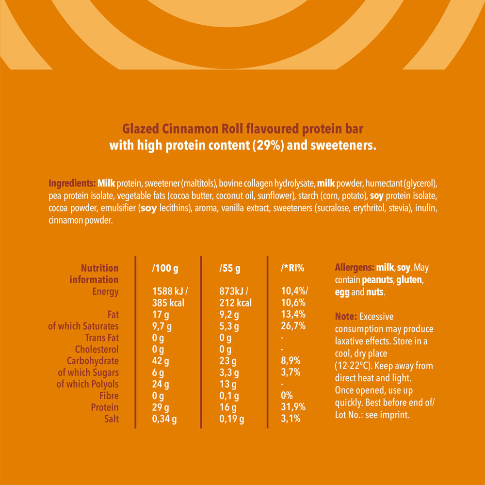 Słodki, pikantny i niezwykle satysfakcjonujący! Z 16 g białka ten baton proteinowy o smaku lukrowanej cynamonowej bułeczki to codzienna przyjemność bez wyrzutów sumienia.