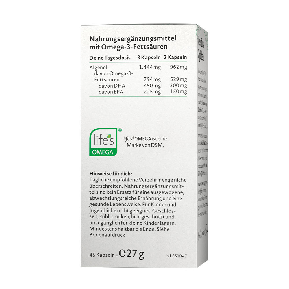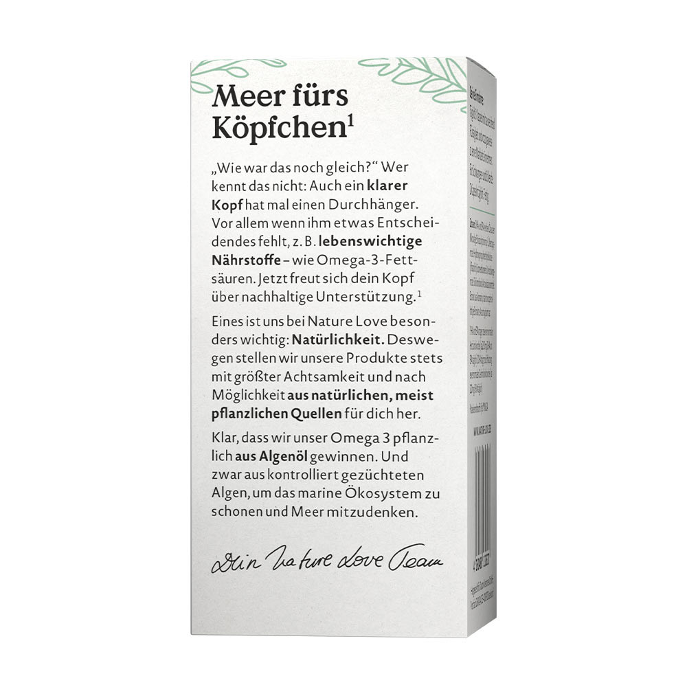 Bez GMO„Jak to było jeszcze raz?” Kto nie zna tego uczucia: nawet jasny umysł może czasem mieć chwilę słabości. Zwłaszcza gdy brakuje mu czegoś istotnego, na przykład ważnych składników odżywczych – takich jak kwasy tłuszczowe omega-3. Wtedy Twój umysł z chęcią przyjmie zrównoważone wsparcie. Nasze omega-3 pozyskujemy z roślin, a konkretnie z oleju z alg. I to z starannie uprawianych alg, aby chronić morski ekosystem i mieć na uwadze dobro oceanu.