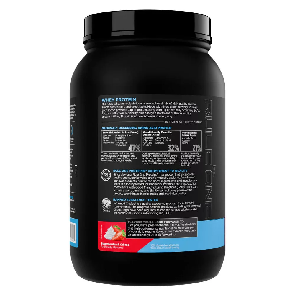 Rule1 Whey Protein (905 g, Truskawka z kremem)