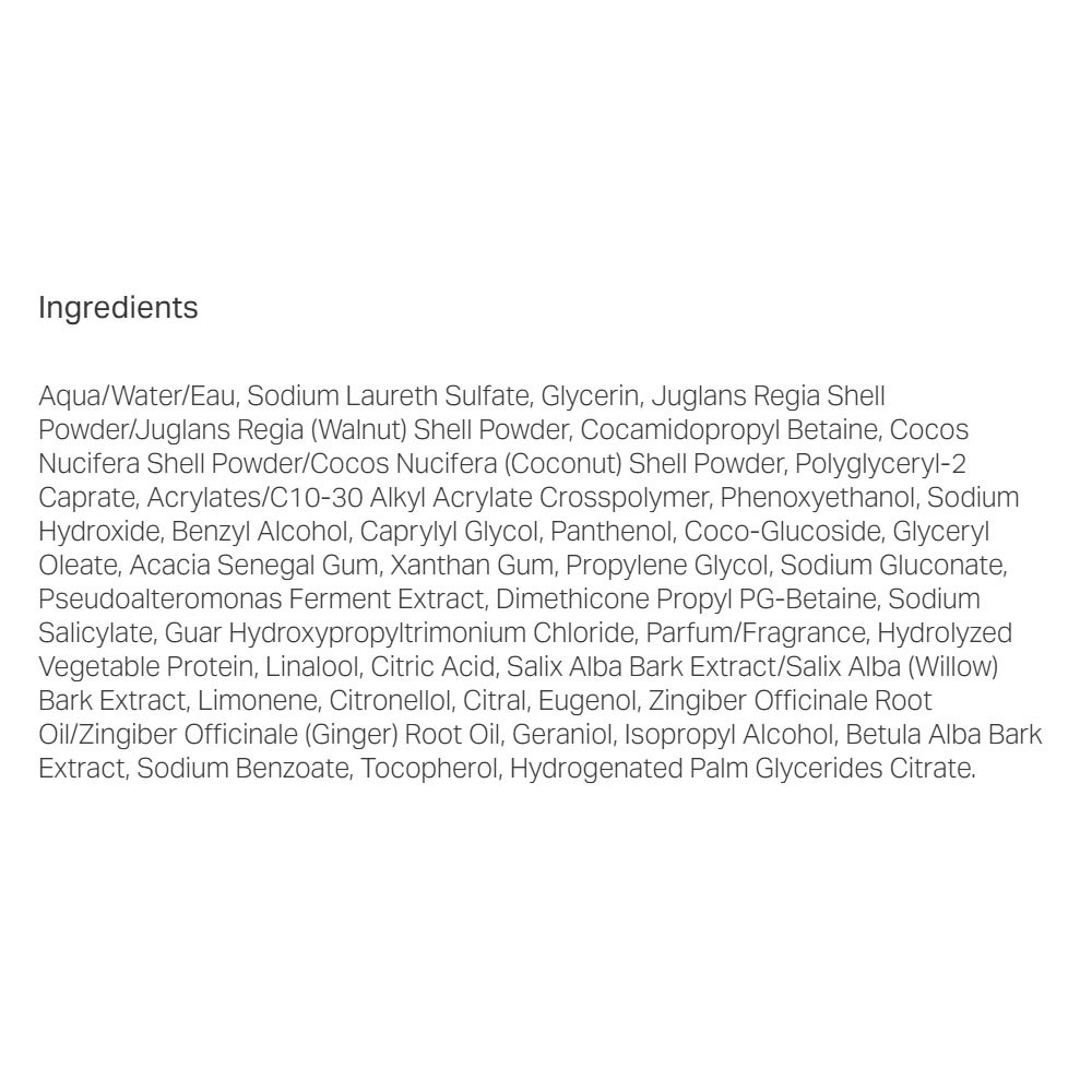 Wykonany w 90% ze składników pochodzenia naturalnego, w tym z olejku eterycznego z imbiru, ekstraktów z kory brzozy i wierzby białej, stosuj go raz w tygodniu zamiast szamponu przeciwłupieżowego z imbirem, aby pomóc usunąć nagromadzenia z włosów i zmywać luźne płatki.