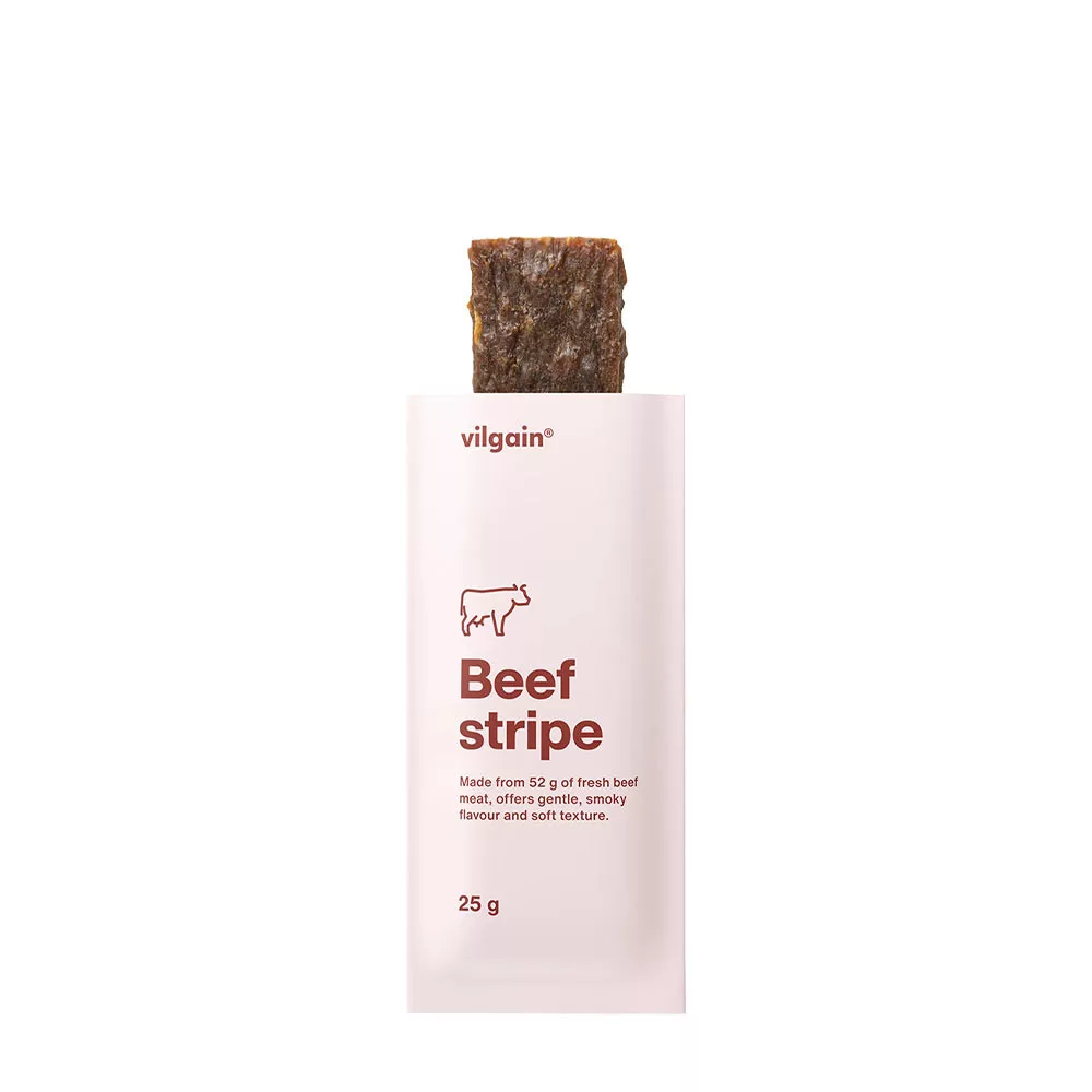 W porównaniu do tradycyjnych jerky, Vilgain Beef Strips są bardziej miękkie, soczystsze i łatwiejsze do pogryzienia.
