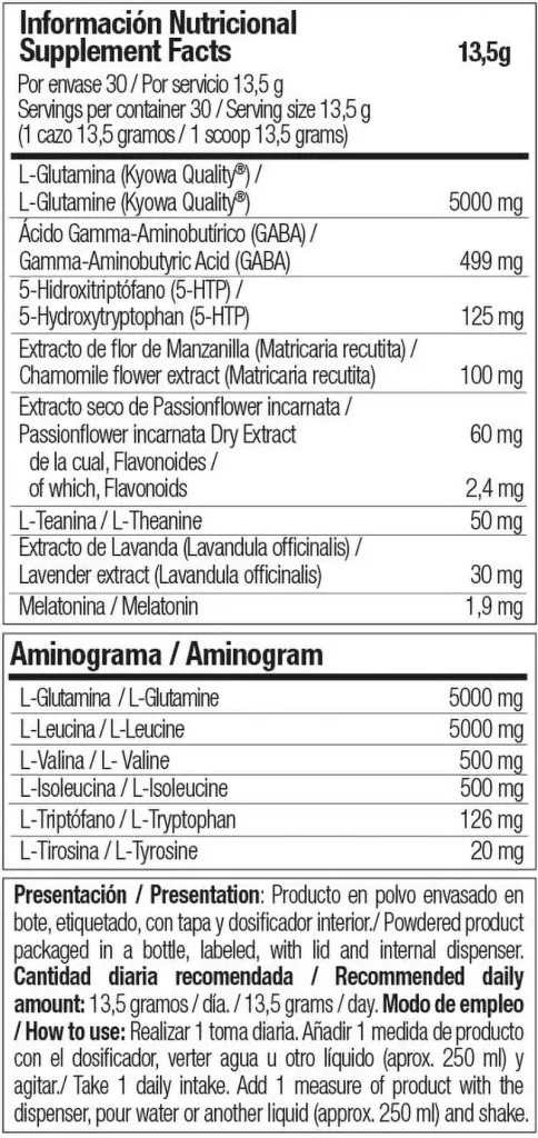 Zawiera wzmocnioną formułę aminokwasów i ekstraktów, aby poprawić nasz odpoczynek i regenerację mięśni podczas snu.