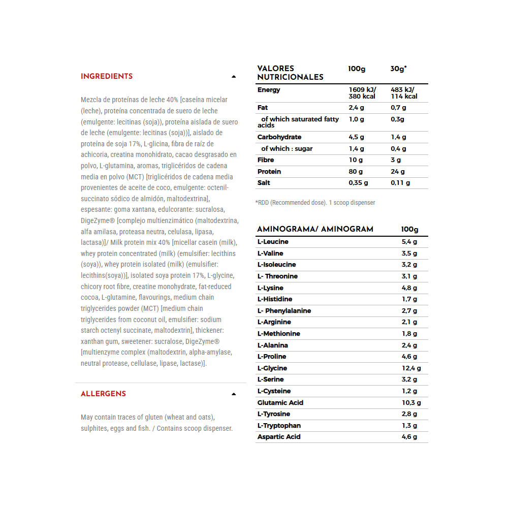 • 24 g białka w porcji o czystości 80% → wspiera regenerację mięśni i rozwój beztłuszczowej masy mięśniowej.