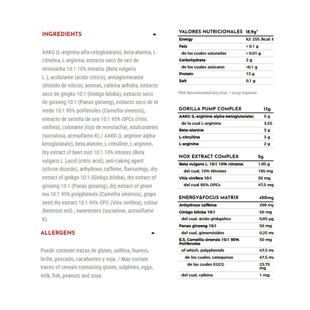 Połączenie 5 g AACG, 3 g jabłczanu cytruliny oraz 2 g beta-alaniny – aminokwasu wspierającego produkcję tlenku azotu – w dawkach rzadko spotykanych na rynku, wynosi efekt pompy mięśniowej na zupełnie nowy poziom.
